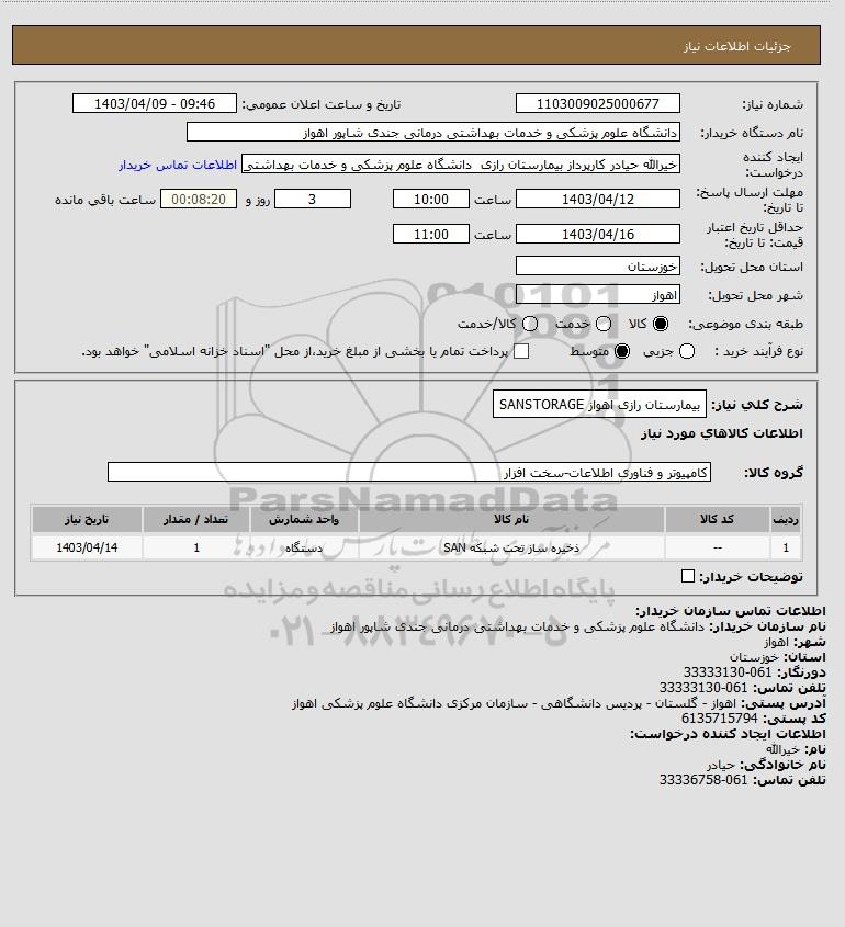 استعلام بیمارستان رازی اهواز SANSTORAGE, استعلام بیمارستان رازی اهواز SANSTORAGE
