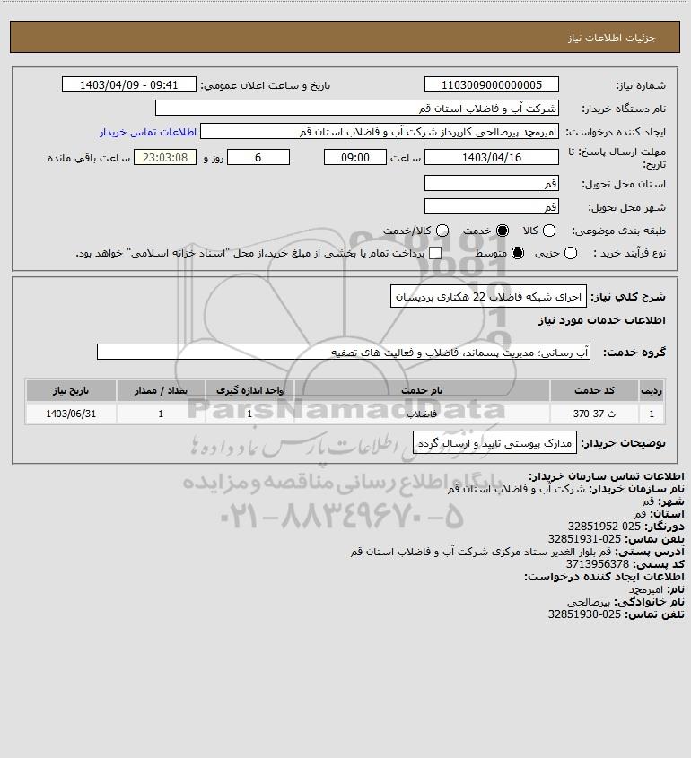 نام دستگاه خریدار:شرکت آب و فاضلاب استان قم