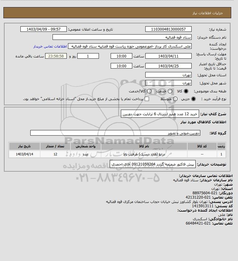 شرح کلی نیاز: خرید 12 عدد هارد اینترنال 6 ترابایت جهت دوربین