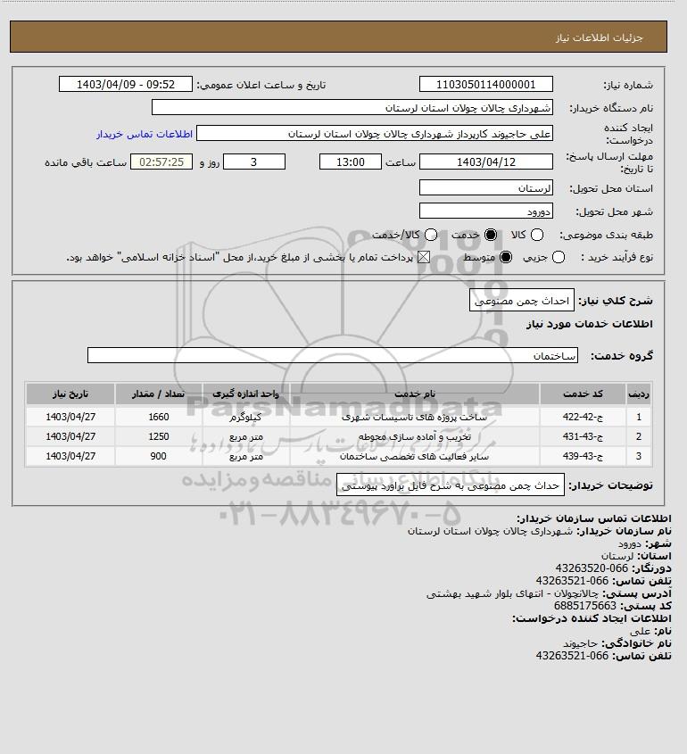 نام دستگاه خریدار:شهرداری چالان چولان استان لرستان