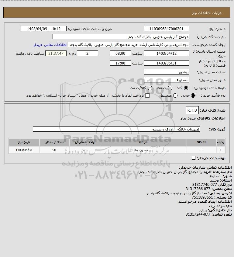نام دستگاه خریدار:مجتمع گاز پارس جنوبی پالایشگاه پنجم