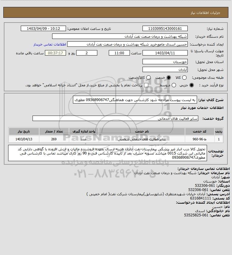 نام دستگاه خریدار:شبکه بهداشت و درمان صنعت نفت آبادان