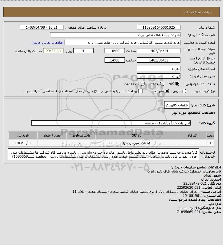 1 -- قطعات کمپرسور هوا عدد 1 1403/05/31