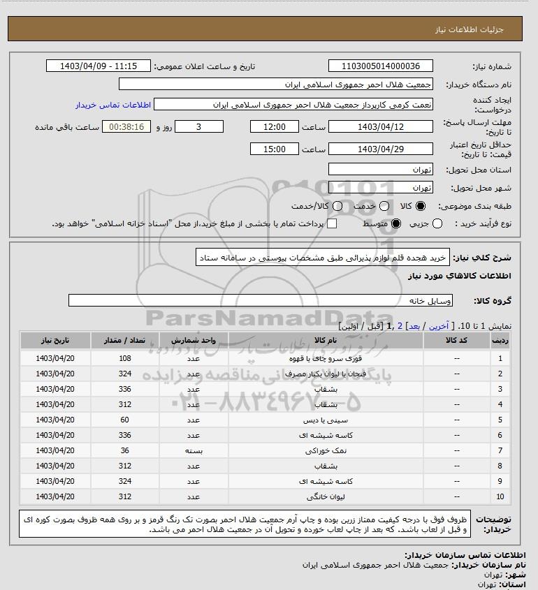 نام دستگاه خریدار:جمعیت هلال احمر جمهوری اسلامی ایران