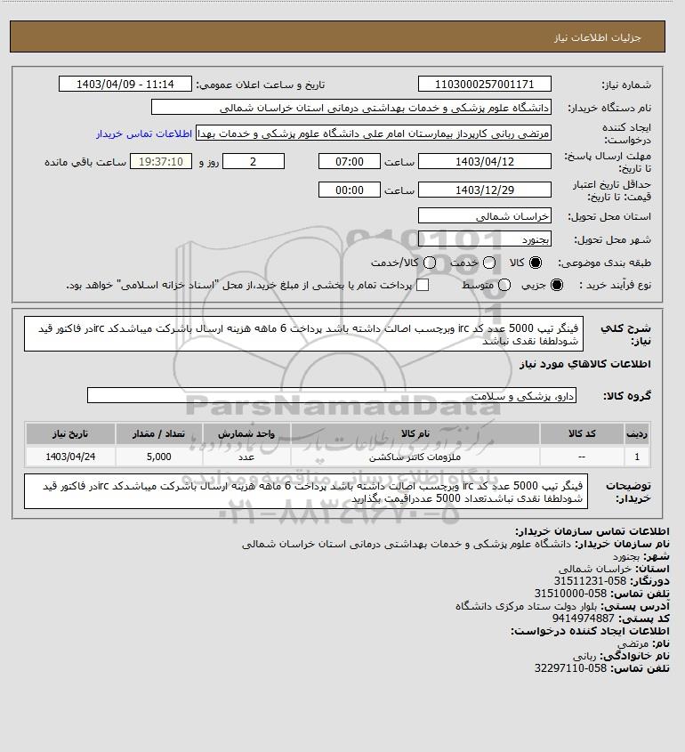 نام دستگاه خریدار:دانشگاه علوم پزشکی و خدمات بهداشتی درمانی استان خراسان شمالی