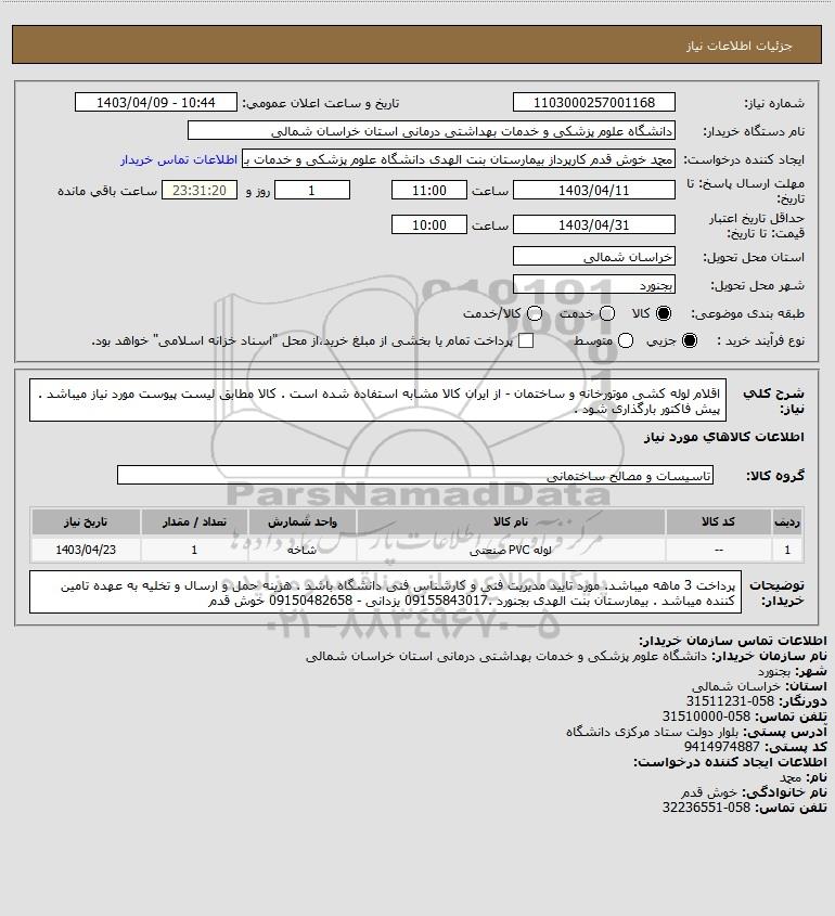 نام دستگاه خریدار:دانشگاه علوم پزشکی و خدمات بهداشتی درمانی استان خراسان شمالی