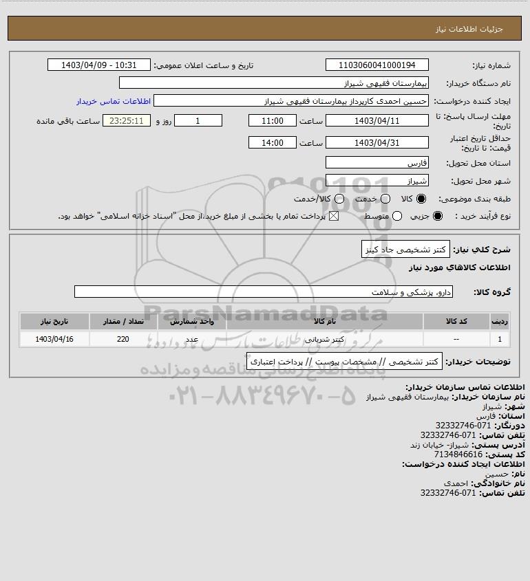 توضیحات خریدار:کتتر تشخیصی // مشخصات پیوست // پرداخت اعتباری