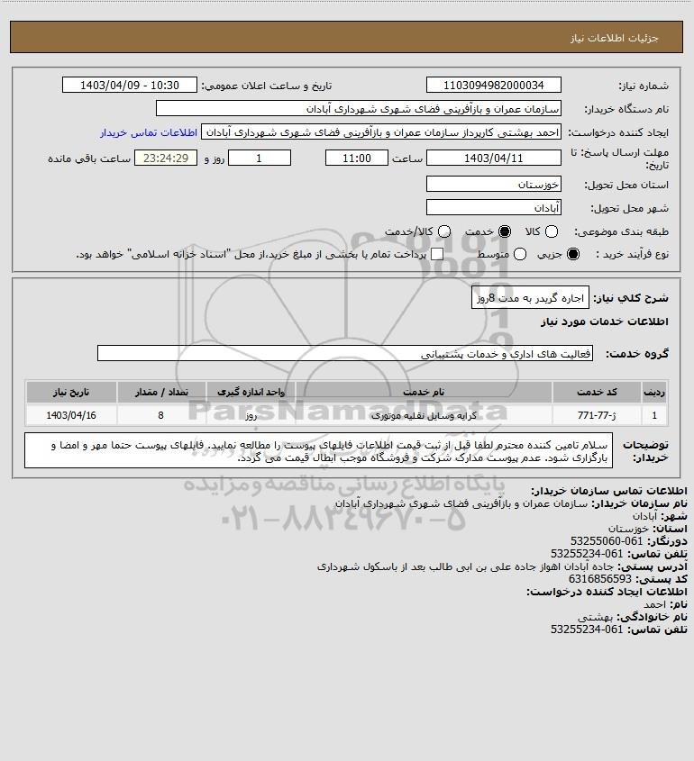 نام دستگاه خریدار:سازمان عمران و بازآفرینی فضای شهری شهرداری آبادان