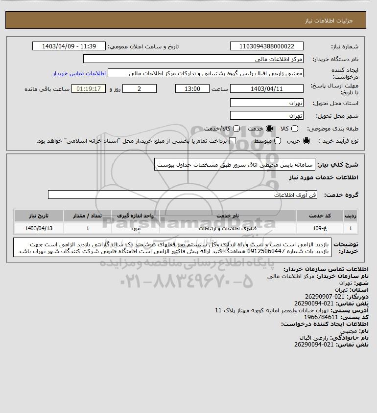 نام دستگاه خریدار:مرکز اطلاعات مالی