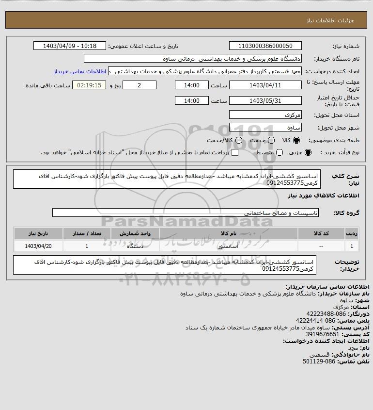 نام دستگاه خریدار:دانشگاه علوم پزشکی و خدمات بهداشتی درمانی ساوه