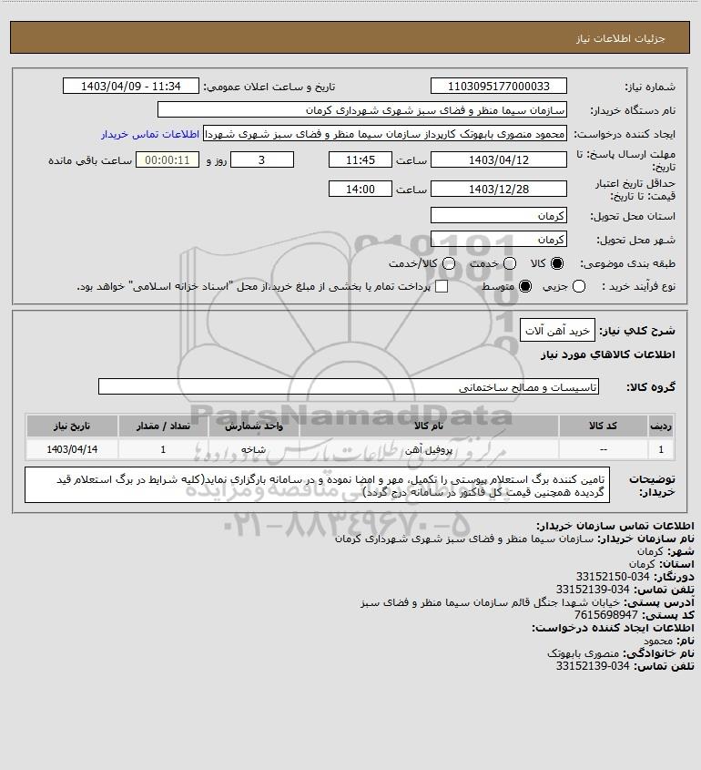 | 1 | -- | پروفیل آهن | شاخه | 1 | 1403/04/14 |