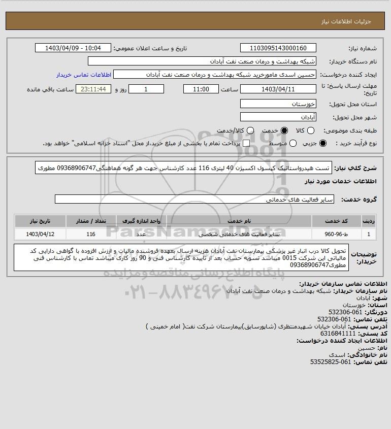 نام دستگاه خریدار:شبکه بهداشت و درمان صنعت نفت آبادان
