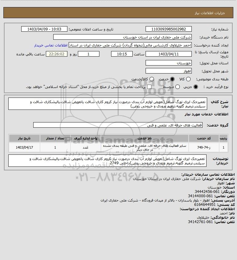نام دستگاه خریدار:شرکت ملی حفاری ایران در استان خوزستان