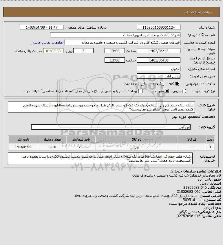 نام دستگاه خریدار:شرکت کشت و صنعت و دامپروری مغان