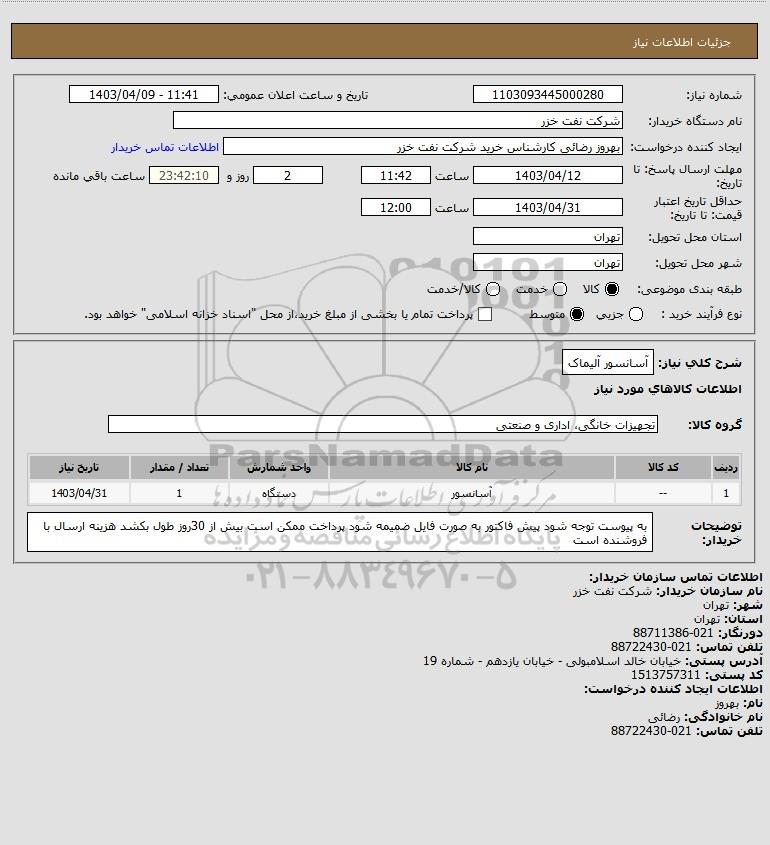 تاریخ پایان اعتبار قیمت: 1403/04/31