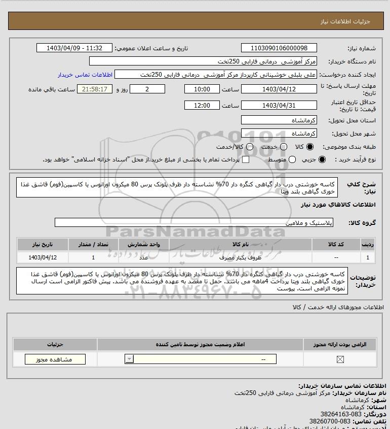 | 1 | -- | ظروف یکبار مصرف | عدد | 1 | 1403/04/12 |