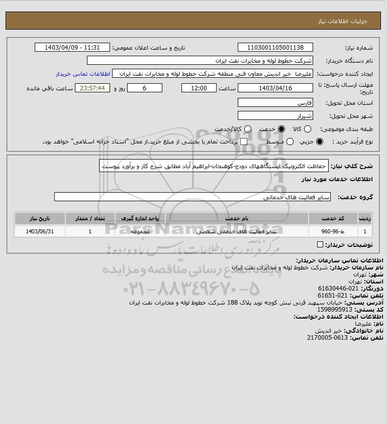 نام دستگاه خریدار:شرکت خطوط لوله و مخابرات نفت ایران