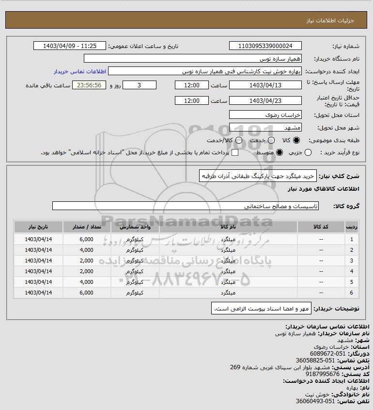 استعلام خرید میلگرد جهت پارکینگ طبقاتی آذران طرقبه, استعلام خرید میلگرد جهت پارکینگ طبقاتی آذران طرقبه