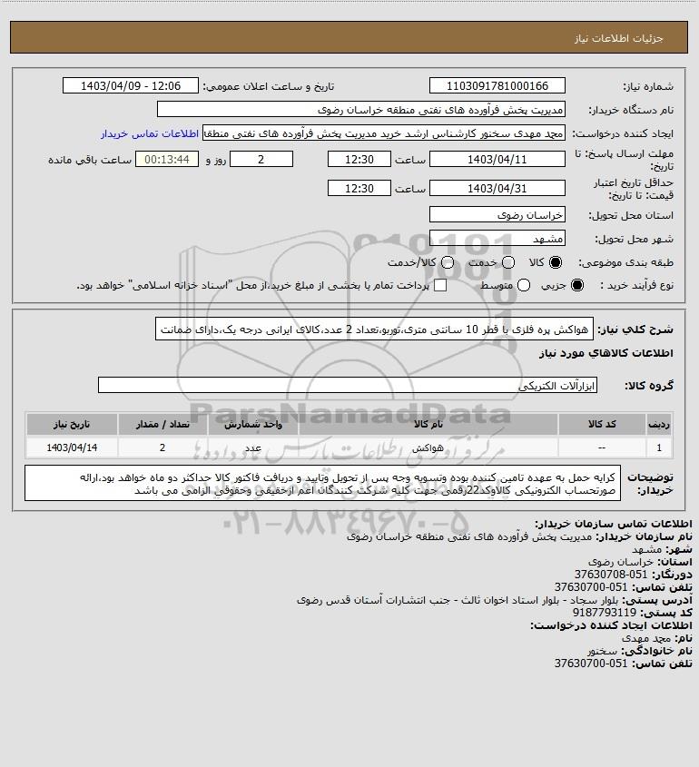 نام دستگاه خریدار:مدیریت پخش فرآورده های نفتی منطقه خراسان رضوی