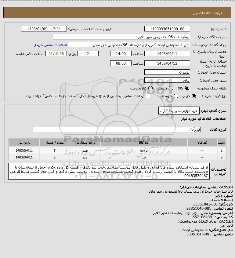 استعلام خرید لوازم اسپیلیت گازی, استعلام خرید لوازم اسپیلیت گازی