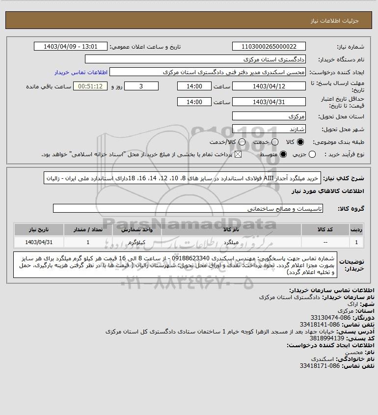 نام دستگاه خریدار:دادگستری استان مرکزی