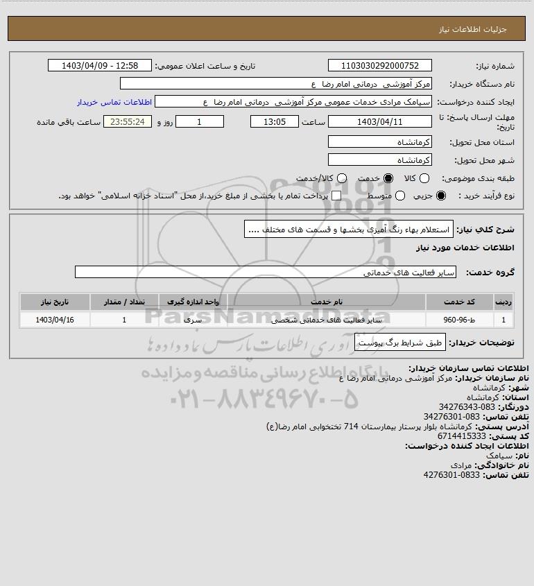شرح کلی نیاز: استعلام بهاء رنگ آمیزی بخشها و قسمت های مختلف ....