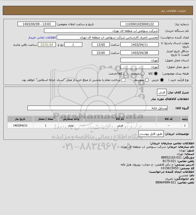 نام دستگاه خریدار:شرکت سهامی اب منطقه ای تهران