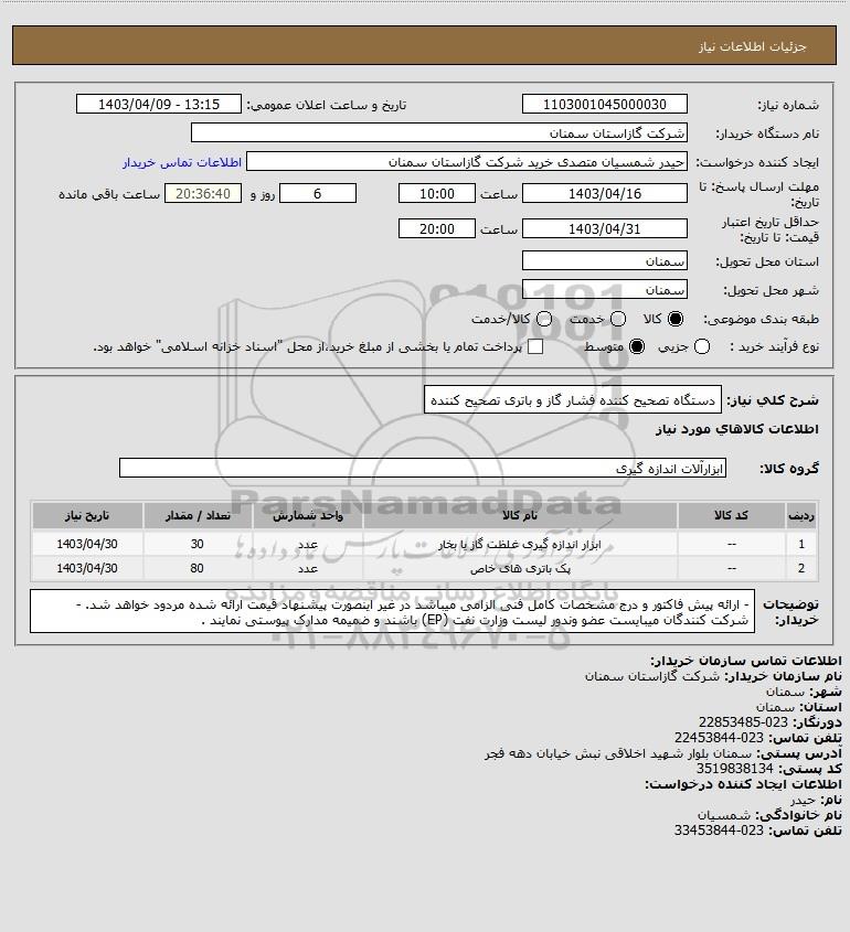 نام دستگاه خریدار:شرکت گازاستان سمنان