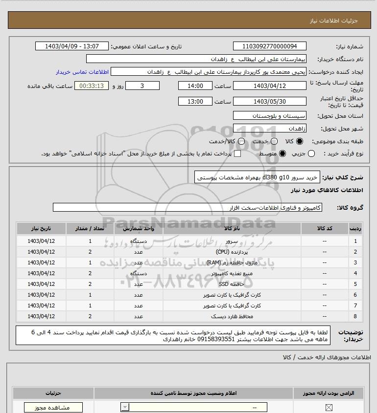 نام دستگاه خریدار:بیمارستان علی ابن ابیطالب ع زاهدان