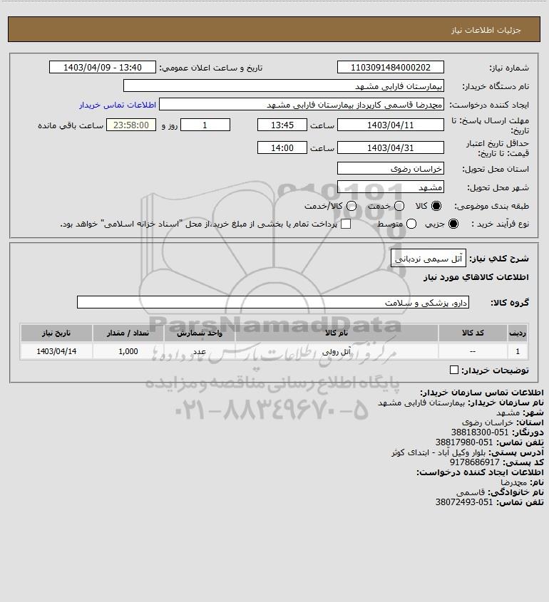 نام دستگاه خریدار:بیمارستان فارابی مشهد
