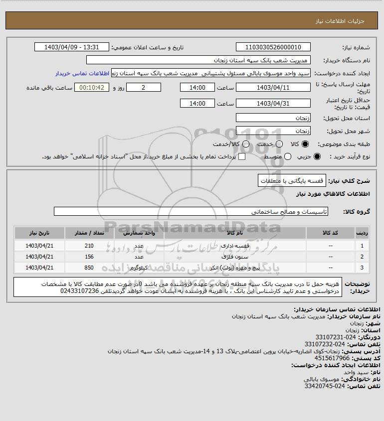 نام دستگاه خریدار: مدیریت شعب بانک سپه استان زنجان