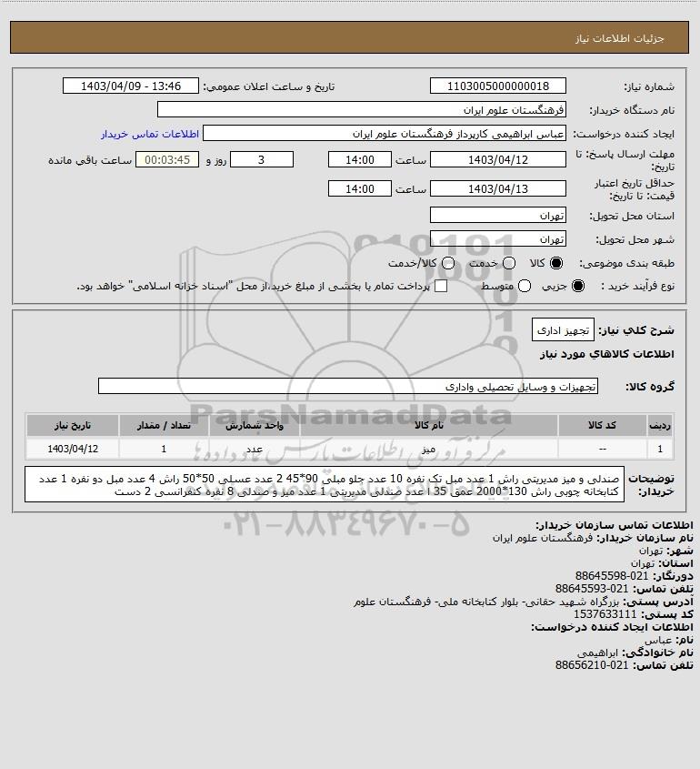 نام دستگاه خریدار:فرهنگستان علوم ایران