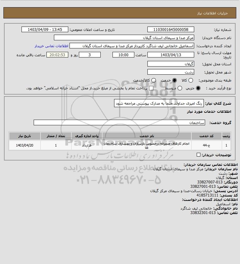 نام دستگاه خریدار:مرکز صدا و سیمای استان گیلان