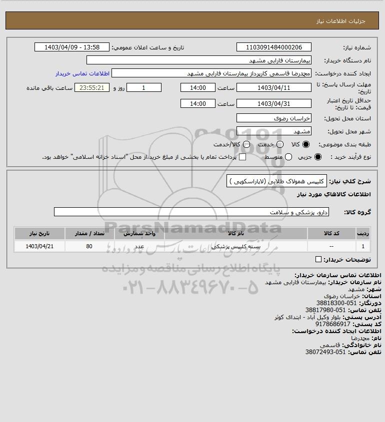 نام دستگاه خریدار:بیمارستان فارابی مشهد