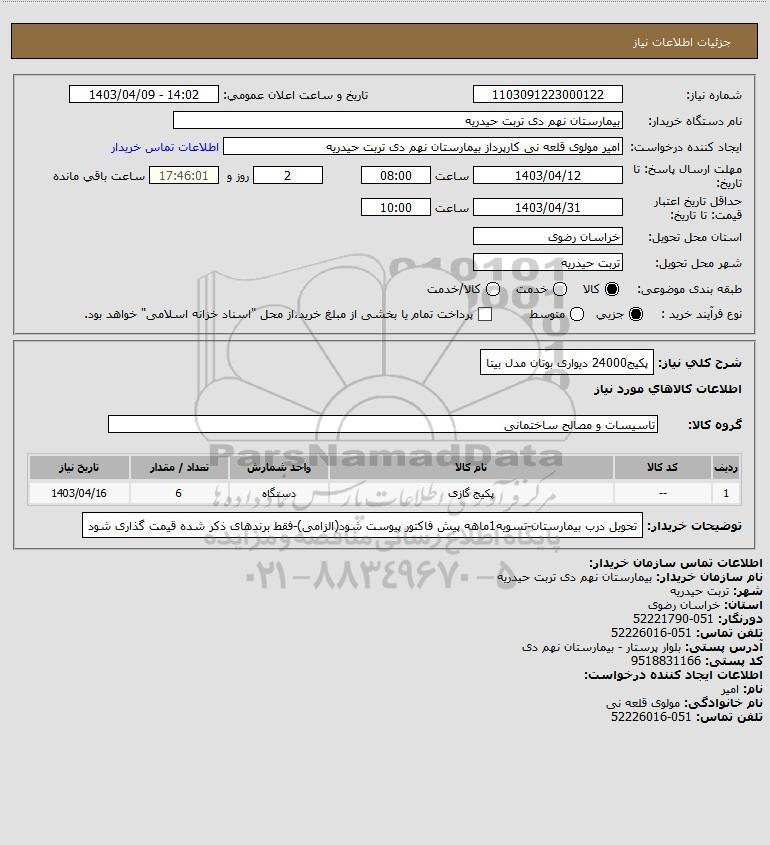 نام دستگاه خریدار:بیمارستان نهم دی تربت حیدریه