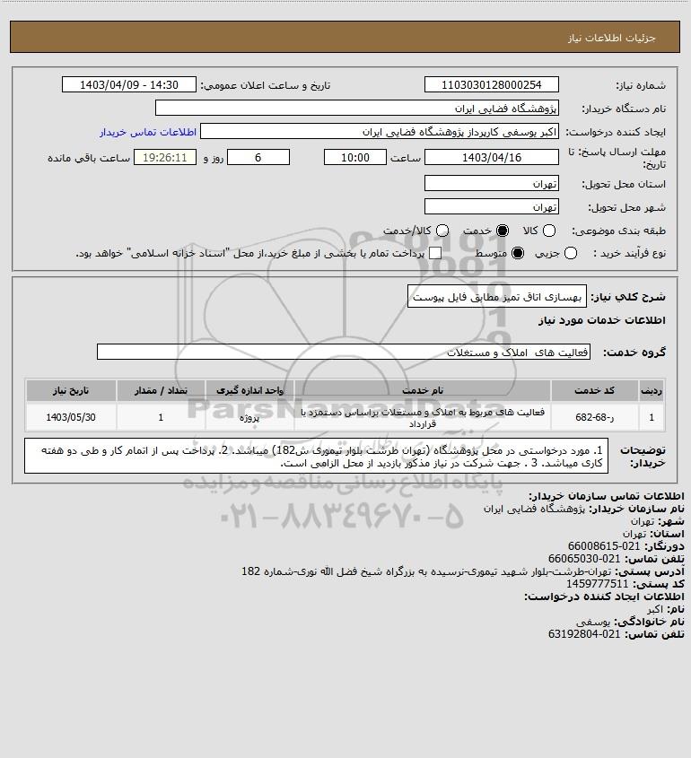 شرح کلی نیاز: بهسازی اتاق تمیز مطابق فایل پیوست