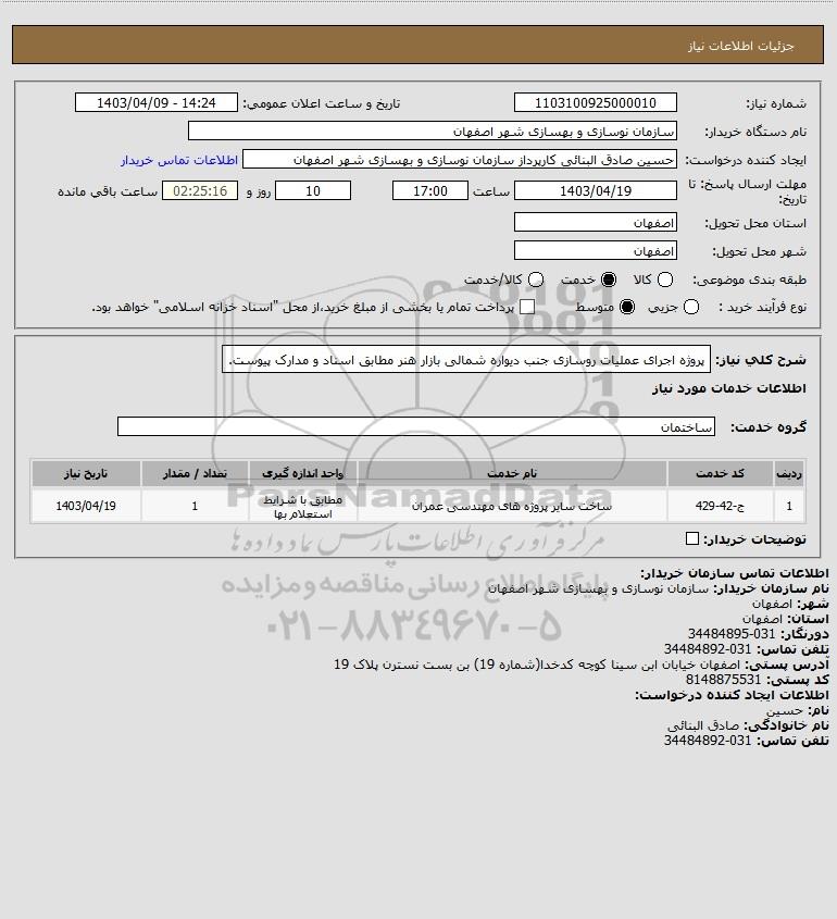 نام دستگاه خریدار:سازمان نوسازی و بهسازی شهر اصفهان