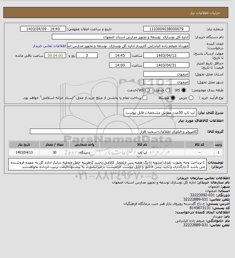 نام سازمان خریدار: اداره کل نوسازی توسعه و تجهیز مدارس استان اصفهان