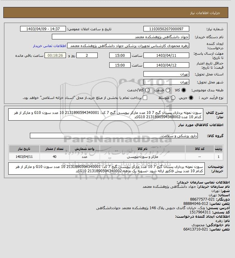 | 1 | -- | مارکر و سوزن بیوپسی | عدد | 40 | 1403/04/11 |