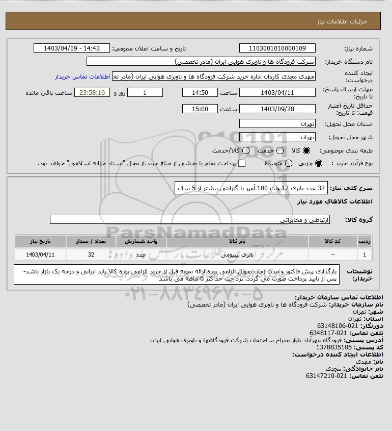 | 1 | -- | باتری لیتیومی | عدد | 32 | 1403/04/11 |