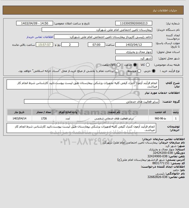 نام دستگاه خریدار:بیمارستان تامین اجتماعی امام علی شهرکرد