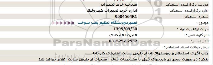 اداره برگزارکننده استعلام: اداره خرید تجهیزات هیدرولیک