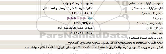 اداره برگزارکننده استعلام:     اداره خرید اقلام عمومی و استاندارد