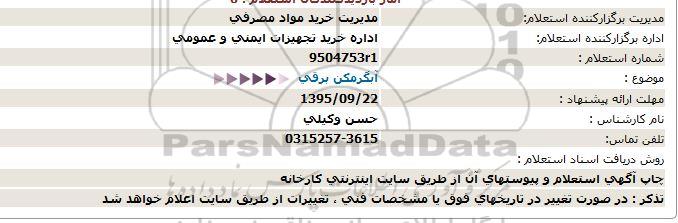 اداره برگزارکننده استعلام:  اداره خرید تجهیزات ایمنی و عمومی