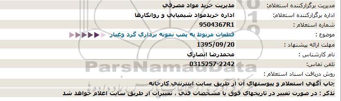 استعلام قطعات مربوط به پمپ نمونه برداری گرد و غبار 95.9.18, استعلام , استعلام قطعات مربوط به پمپ نمونه برداری گرد و غبار 95.9.18