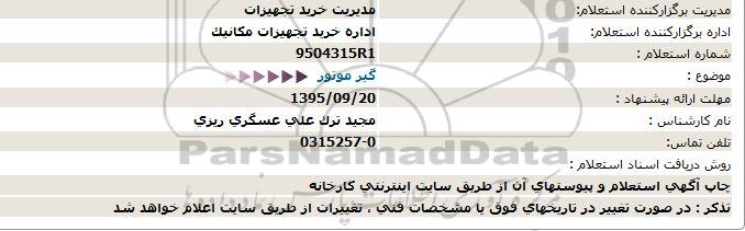 اداره برگزارکننده استعلام: اداره خرید تجهیزات مکانیک