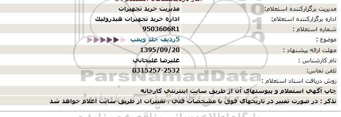 اداره برگزارکننده استعلام: اداره خرید تجهیزات هیدرولیک