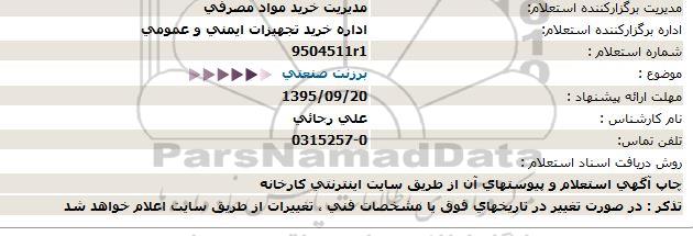 اداره برگزارکننده استعلام:  اداره خرید تجهیزات ایمنی و عمومی