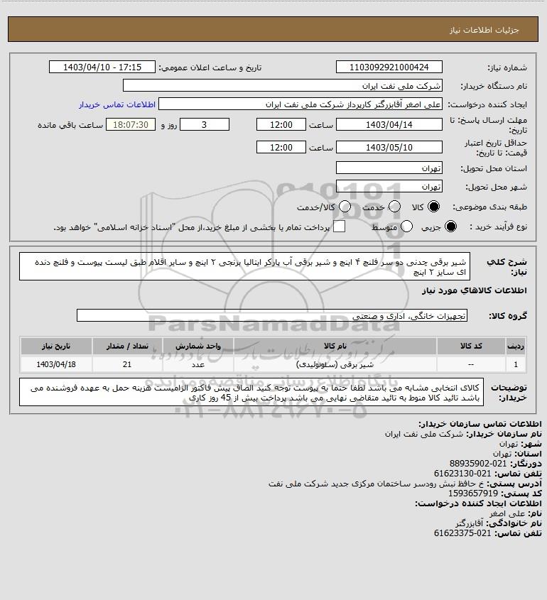 نام دستگاه خریدار:شرکت ملی نفت ایران