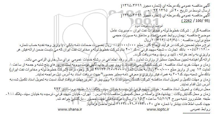 مناقصه گزار : شرکت خطوط لوله و مخابرات نفت ایران – روابط عمومی ؟